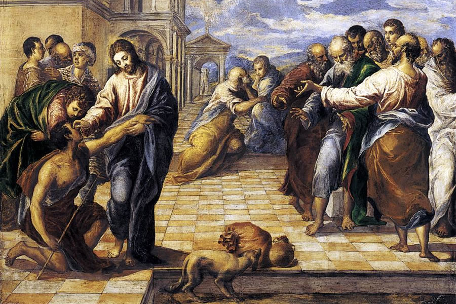 At the beginning of the story, the man cannot see Jesus. He only experiences His mercy. Jesus places mud on his eyes and sends him to wash. He obeys, and he returns able to see.