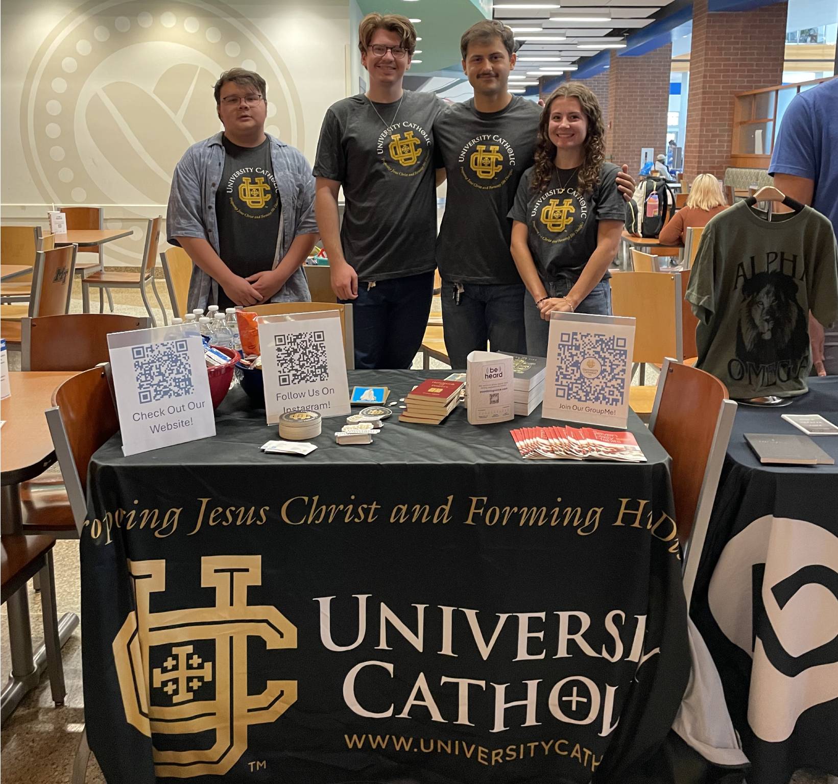 UNIVERSITY CATHOLIC is a vibrant community of joyful and dedicated students who are passionate about their faith. Encompassing all aspects of student life, University Catholic brings us together in fellowship and camaraderie as we strengthen our personal relationship with Jesus Christ. Our chaplain is committed to making the Sacraments accessible and addressing the spiritual needs of students. The campus minister is available to assist students in their faith journey. FOCUS missionaries, who are recent college graduates, engage with students and meet them where they are. University Catholic serves as your home away from home, connecting students through faith, fellowship, and fun!